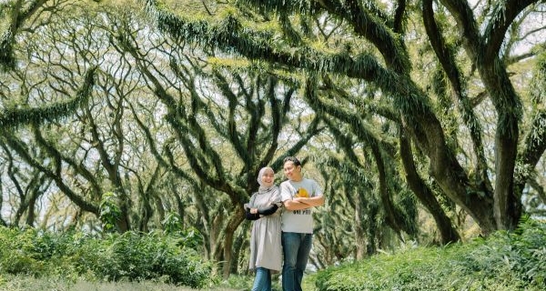 De Djawatan is a tourist forest located in Benculuk, Cluring, Banyuwangi Regency. The trees in De Djawatan are rain trees filled with epiphytic plants. Visitors often take pictures with the background of these trees.